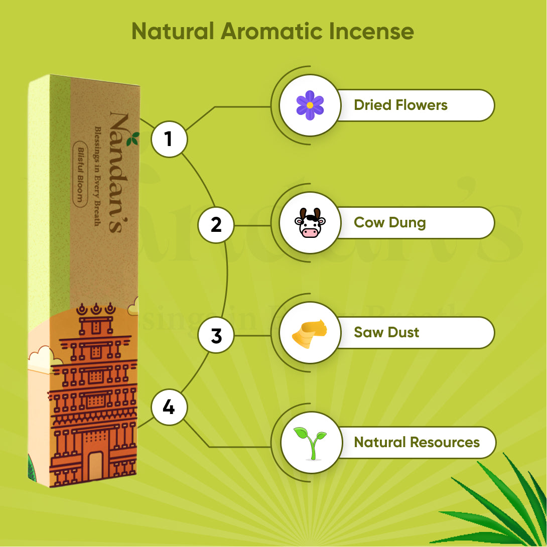At Nandans, we believe in the power of nature to heal and rejuvenate the body, mind, and spirit. That's why our Blissful Bloom Incense Stick is made with only the finest natural ingredients, sourced from sustainable and ethical suppliers to ensure the highest quality and purity.